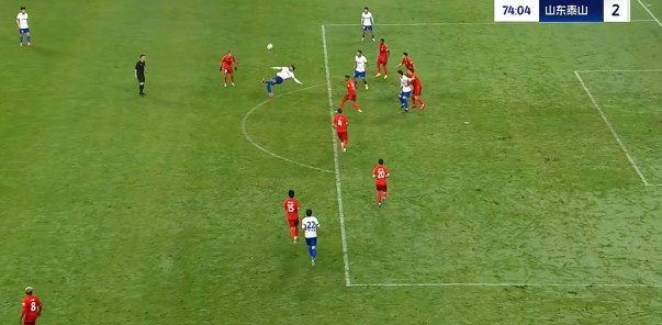第74分钟,泰山右路传中,泽卡胸部停球后在禁区外直接选择倒钩打门,皮球角度稍正被郭全博稳稳抱住。↓