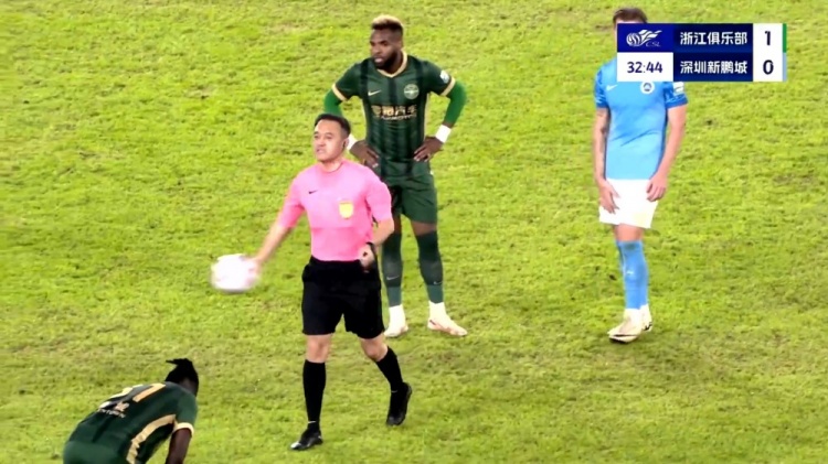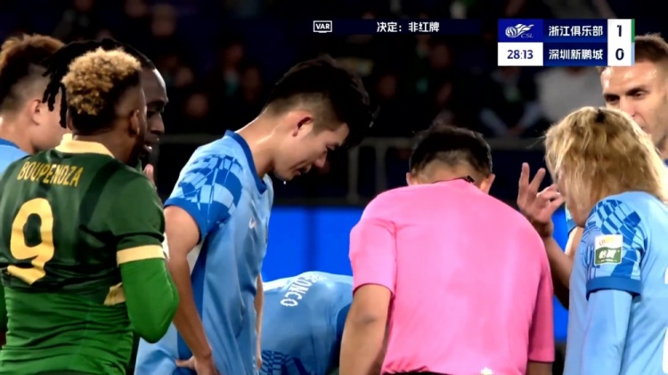 第27分钟,奥乌苏踩到张煜东脚踝,VAR回看后判定并非红牌↓