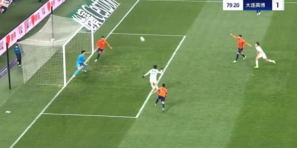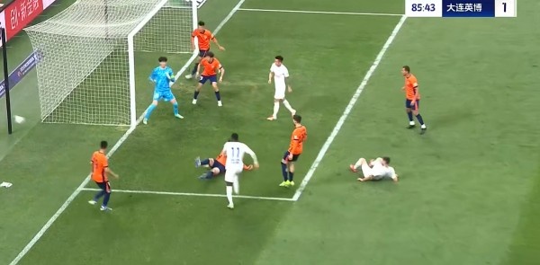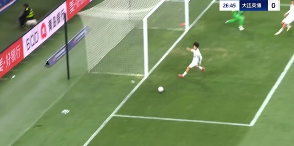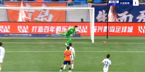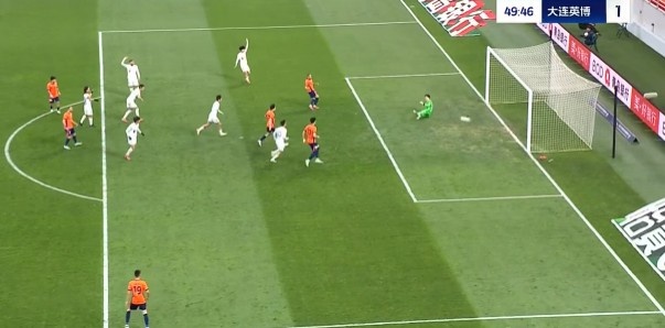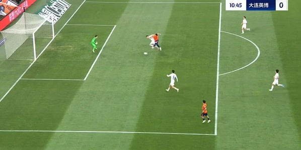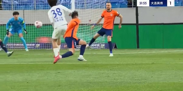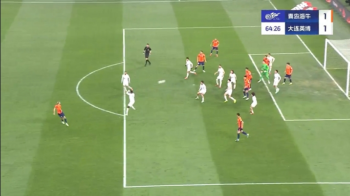 半场战罢,大连英博暂1-0青岛海牛。