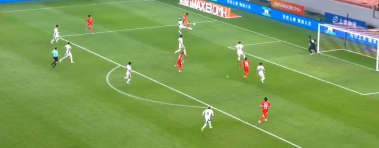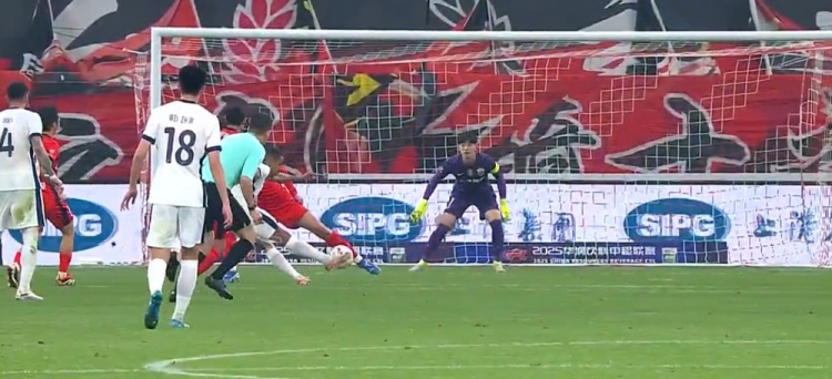 李圣龙进球越位!第73分钟,维塔尔主罚任意球开出被解围,李帅外围再远射,皮球打在李圣龙腿上折射破门,裁判吹罚越位进球无效。↓