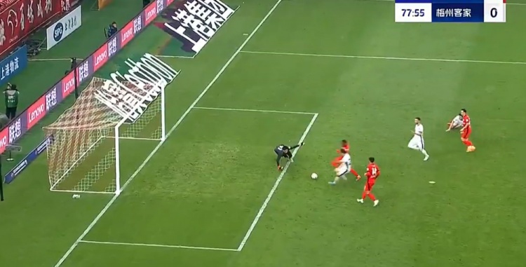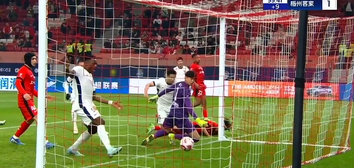第63分钟,恩戈姆右路传中飞向球门,颜骏凌扑球脱手,梅州球员再补射打偏。↓