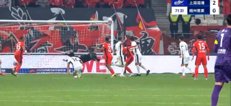 王燊超终场前自摆乌龙!第90+9分钟,恩戈姆主罚任意球开出,王燊超高难度凌空解围,不慎将皮球踢进自家大门,上海海港2-1梅州客家!↓