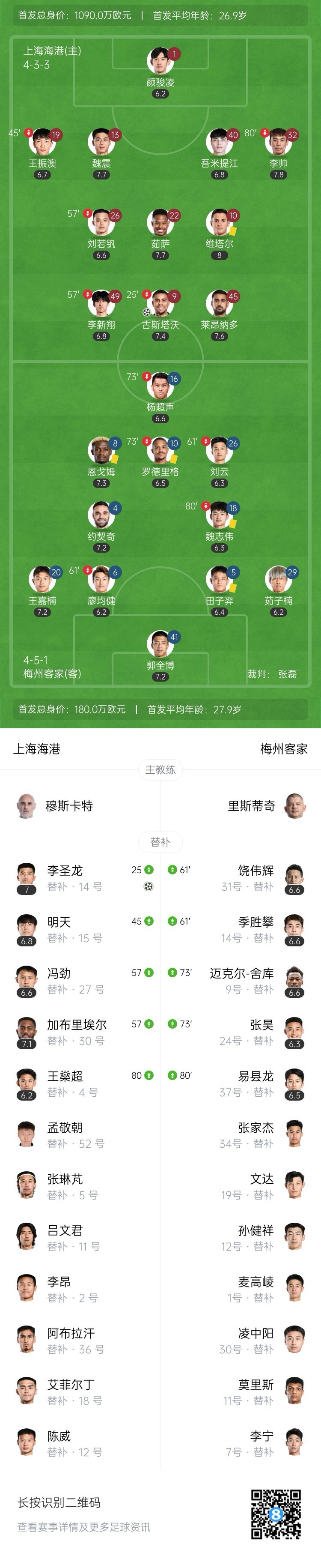 4轮不败!海港2-1对梅州3连胜 王燊超自摆乌龙古斯塔沃王振澳伤退