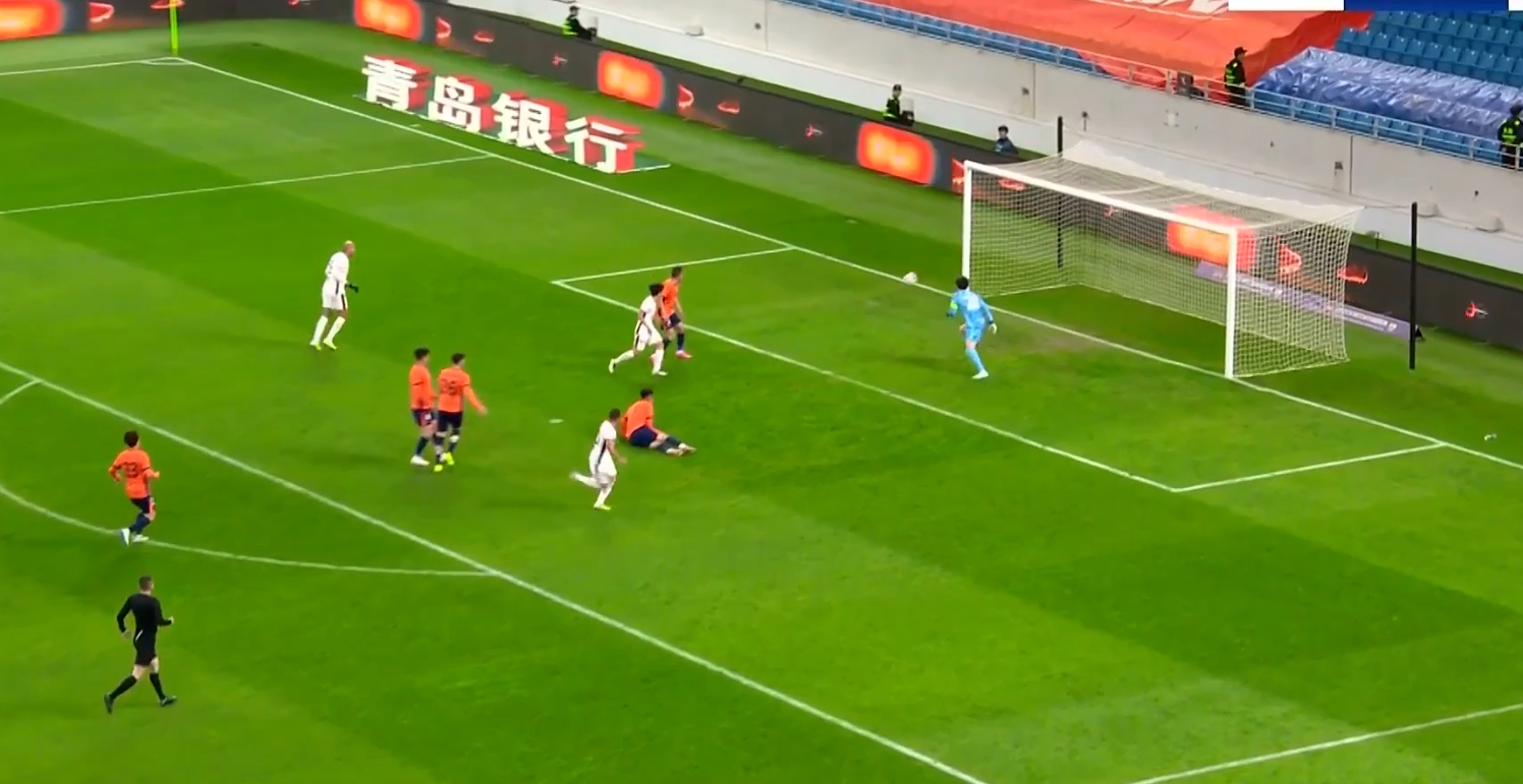 第83分钟,李漠雨前插半单刀机会打门被扑,随后队友补射偏出远端立柱。↓