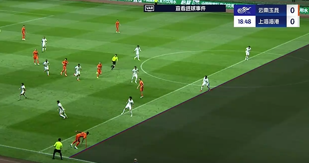 侯永永进球被VAR判罚越位在先无效!第15分钟,玉昆后场长传,奥斯卡右路突破传中,颜骏凌扑球没有破坏远,侯永永跟进凌空抽射破门!通过VAR,裁判吹罚奥斯卡越位在先,进球无效!↓
