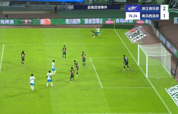 伤停补时8分钟。全场比赛结束,浙江2-1青岛西海岸。