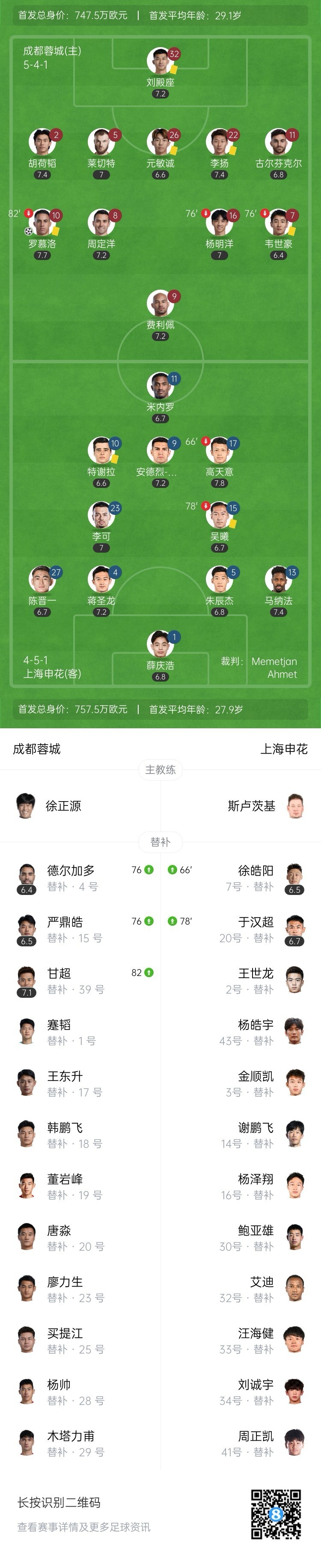 全场比赛结束,成都蓉城主场1-0击败上海申花。
