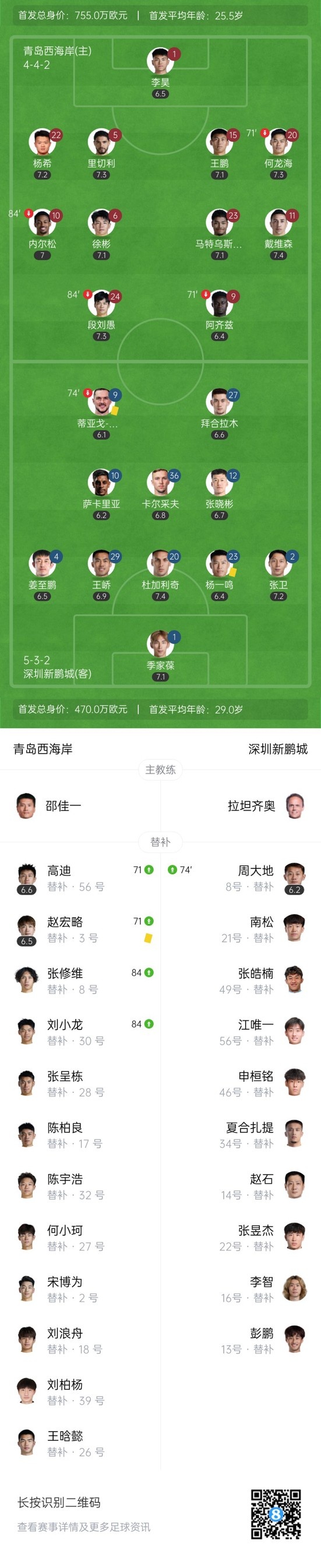 双方首发以及换人信息: