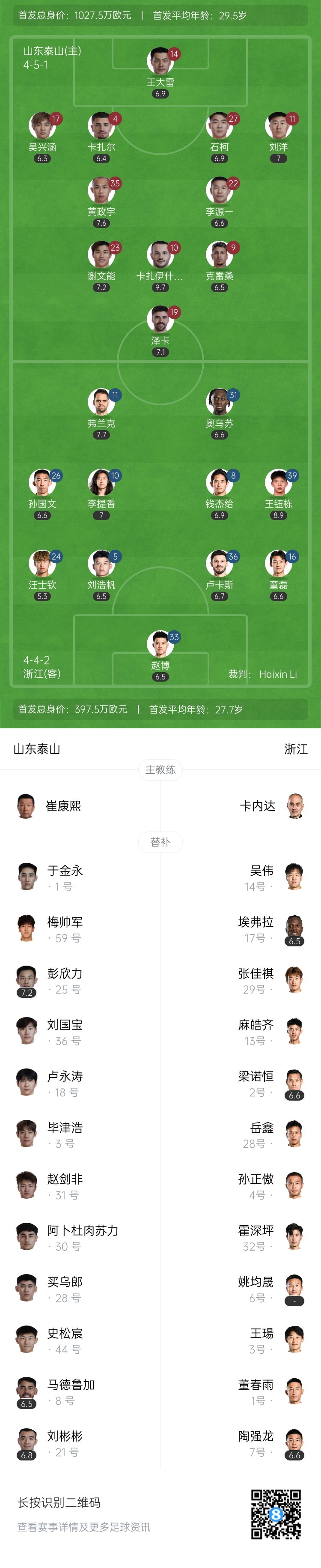 【双方首发及换人信息】