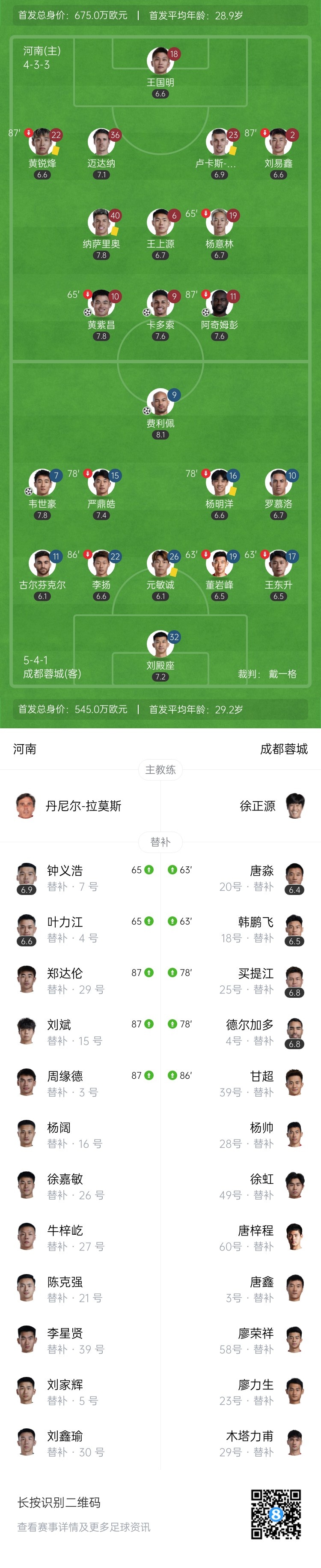 第27分钟,河南队左路传中,后门柱位置卡多索头球摆渡到门前,黄紫昌头球接力破门!河南队2-2再次扳平成都蓉城↓