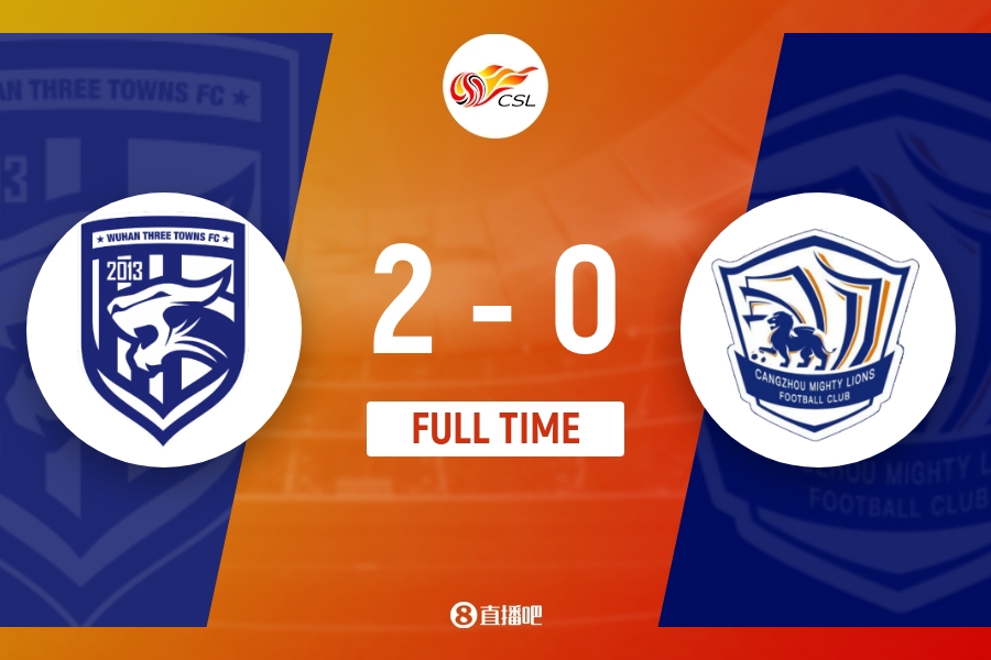 全场比赛结束,武汉三镇2-0沧州雄狮。