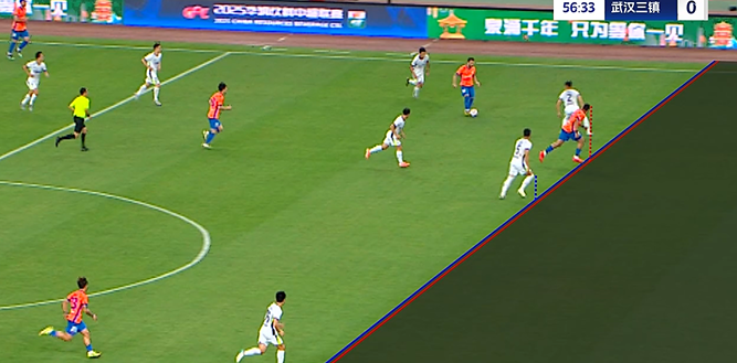 第44分钟,武汉三镇反击机会,图多列接到队友分球,禁区内小角度射门击中立柱弹出。↓