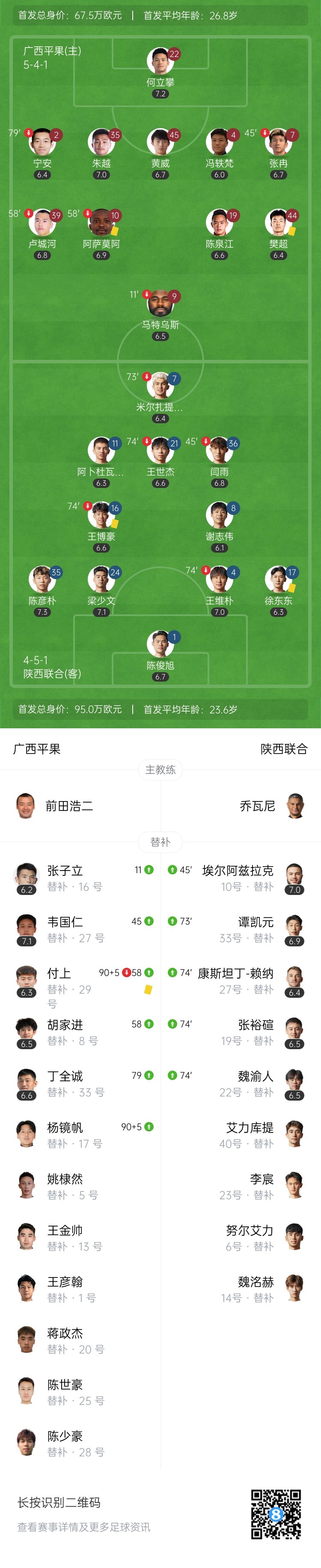 7月5日讯 北京时间19:30,中甲第15轮广西平果vs陕西联合,比赛在平果国晶体育场打响!上半场,马特乌斯伤退;阿萨莫阿、王博豪染黄。下半场,卢城河失良机。最终广西平果0-0战平陕西联合,广西平果近4轮首次拿分,仍居垫底;陕西联合6轮不败排名第8。