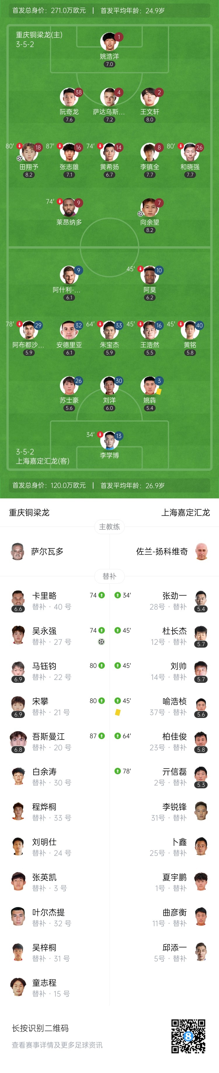 第13分钟,重庆前场右路的定位球机会,黄希扬主罚开到禁区前点,萨达乌斯卡斯头球攻门击中立柱弹出↓