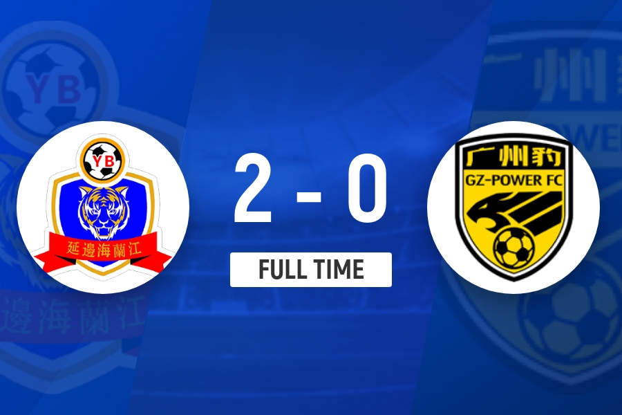 下半场补时5分钟,延边龙鼎2-0广东广州豹。