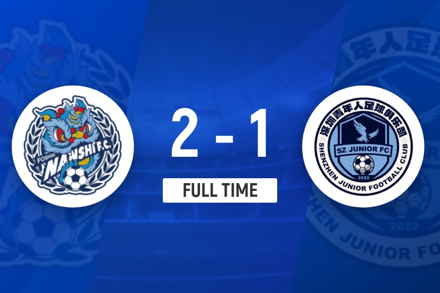 全场比赛结束,佛山南狮2-1击败深圳青年人。