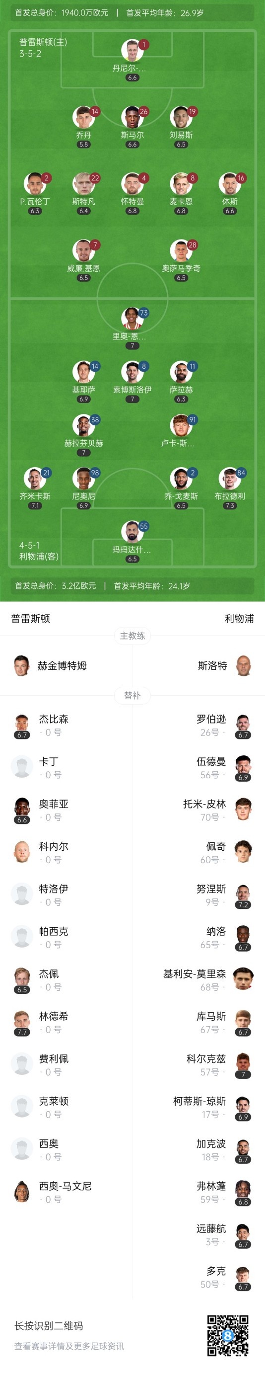 下半场补时2分钟,普雷斯顿1-3利物浦。