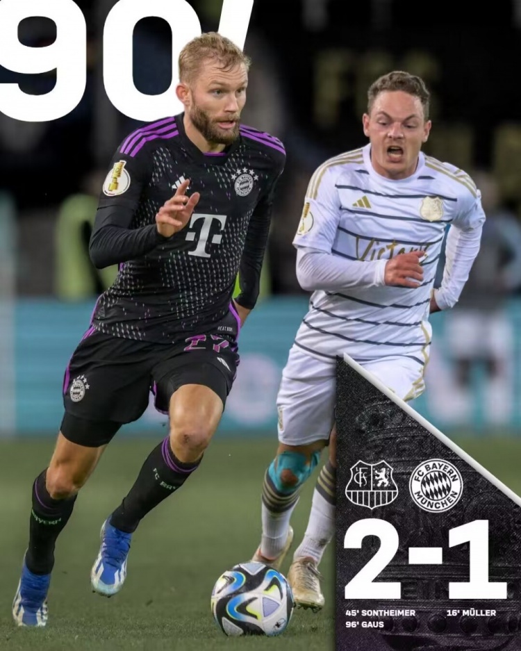 德国杯-拜仁1-2遭德丙第15萨尔布吕肯逆转绝杀淘汰 德里赫特伤退