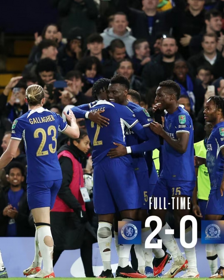 切尔西首发:1-罗伯特-桑切斯、24-里斯-詹姆斯(61' 27-古斯托)、2-迪萨西、5-巴迪亚西勒(62' 26-科尔维尔)、3-库库雷利亚、16-乌戈丘库、8-恩佐-费尔南德斯(87' 52-马托斯)、23-加拉格尔、20-帕尔默(87' 11-马杜埃凯)、7-斯特林、15-杰克逊(76' 25-凯塞多)