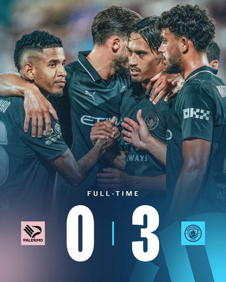 8月10日讯 足球友谊赛,巴勒莫对阵曼城,比赛在伦佐巴贝拉球场进行。上半场,哈兰德先拔头筹。易边再战,双方大面积换人,赖因德斯双响。最终曼城3-0巴勒莫。