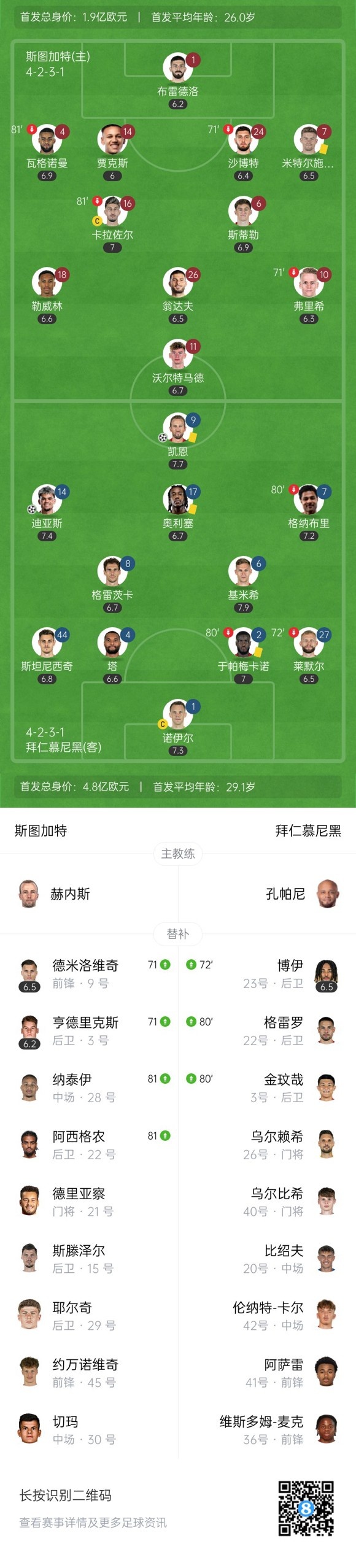下半场补时4分钟,斯图加特1-2拜仁。