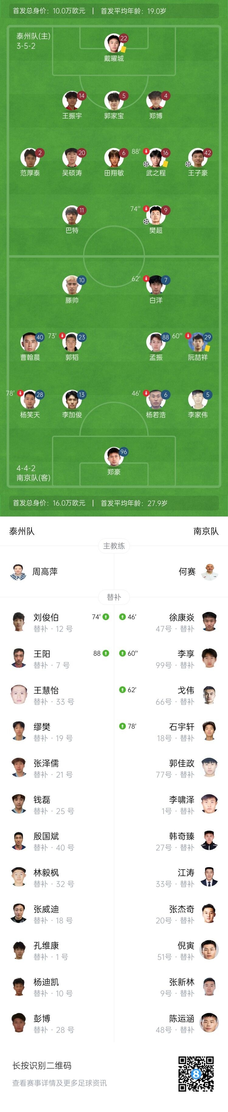 第6分钟,泰州右路打穿对手防线,武之程门前混战将球打进!1-0!泰州队取得梦幻开局!↓