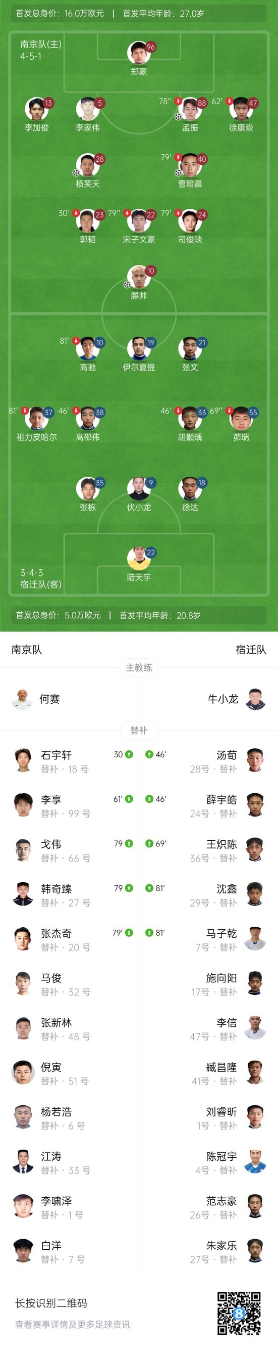 第47分钟,南京再下一城!右路角球开到禁区滕帅头球中楣,第二点杨笑天补射破门,南京3-0宿迁。↓