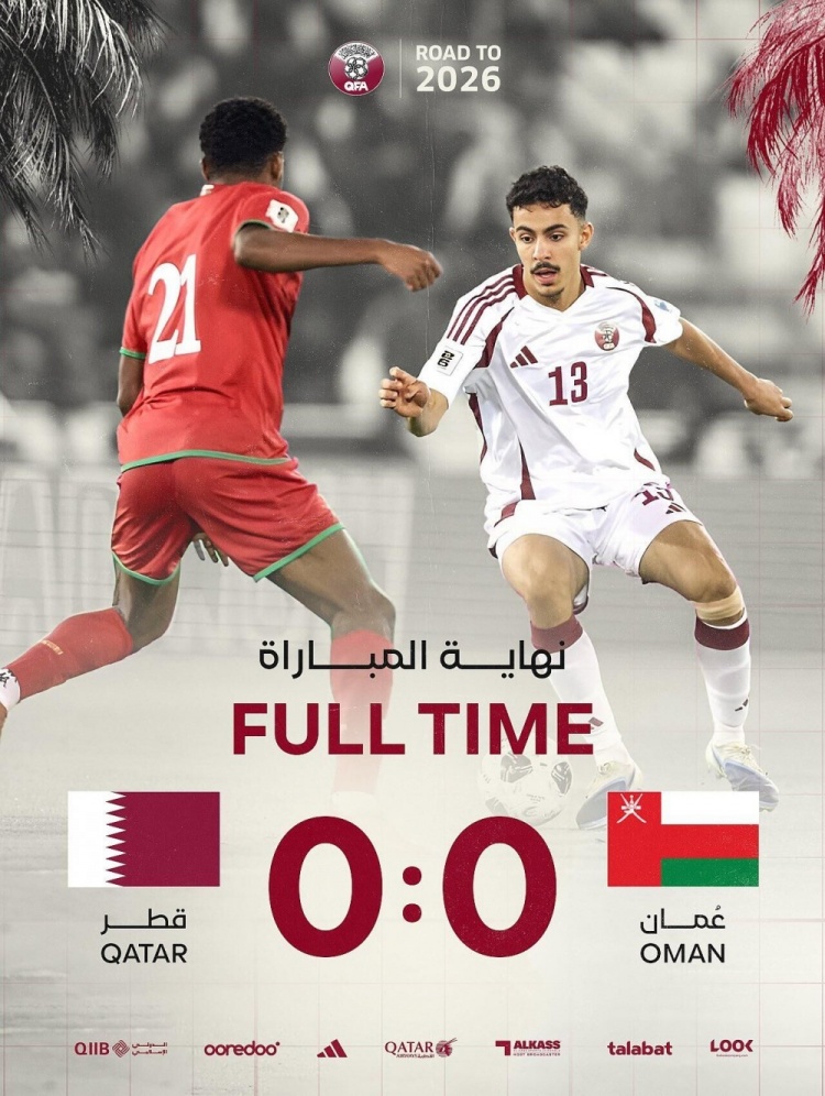 世预赛-阿曼0-0闷平卡塔尔 卡塔尔七成控球率&12脚射门仅2射正