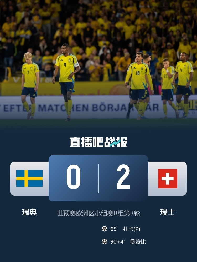 出线危!瑞典0-2不敌瑞士遭三场不胜小组垫底 伊萨克约克雷斯哑火