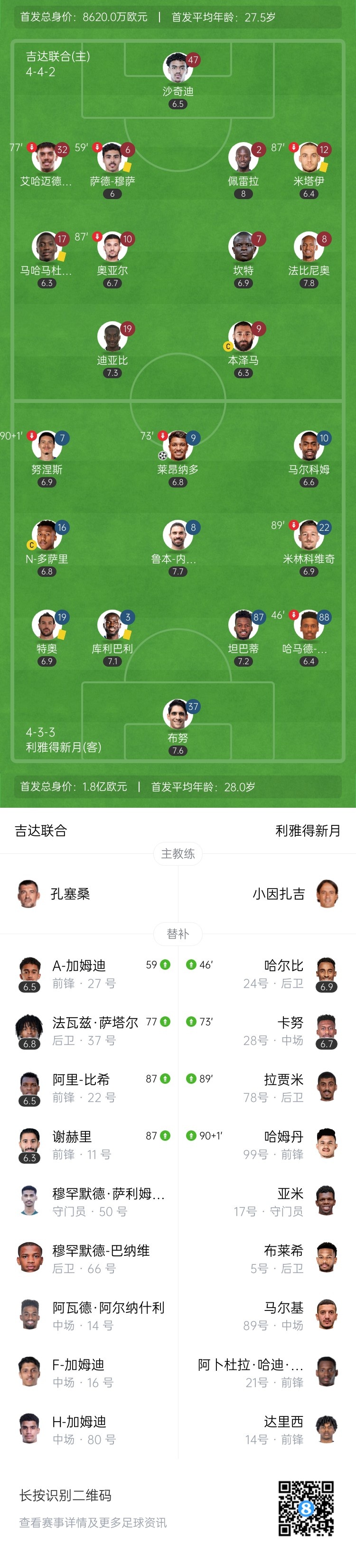 下半场补时3分钟。最终全场比赛结束,吉达联合0-2利雅得新月。