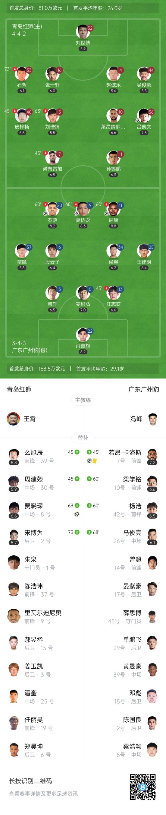 双方首发以及换人信息: