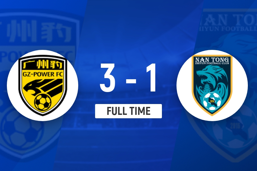 下半场补时6分钟,广东广州豹3-1南通支云。