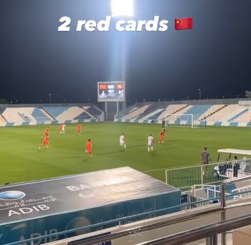 比赛第72分钟,国足第三人染红,吴少聪被罚下场。