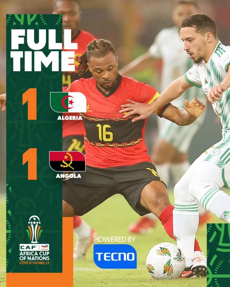 全场比赛结束,阿尔及利亚1-1安哥拉。