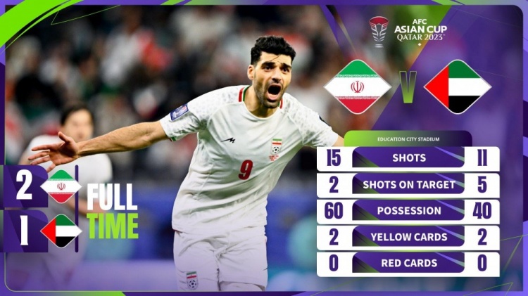 亚洲杯-伊朗2-1阿联酋全胜头名出线 阿联酋小组第二晋级