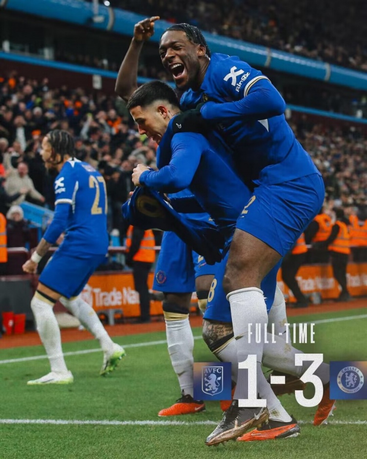 2月8日讯 北京时间2月8日凌晨4:00,足总杯第4轮重赛,切尔西客战阿斯顿维拉,上次交手两队0-0战平。上半场马杜埃凯助攻加拉格尔破门,古斯托助攻杰克逊再下一城,切尔西暂2-0阿斯顿维拉;下半场恩佐任意球世界波直挂死角,补时阶段迪亚比破门,最终切尔西3-1阿斯顿维拉,晋级下一轮,对手将是利兹联。