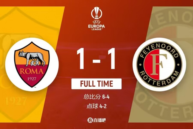 2月23日讯 北京时间04:00,欧联杯1/8决赛附加赛次回合,罗马主场迎战费耶诺德,双方首轮战成1-1。本场比赛,开场费耶诺德很快取得领先,但随后佩莱格里尼远射扳平,双方90分钟战成1-1。加时赛双方也无建树,比赛进入点球大战。点球大战中,卢卡库射失点球,斯维拉尔连续扑出2次点球,最终罗马通过点球大战5-3战胜费耶诺德,两回合总比分6-4淘汰对手,晋级欧联16强!