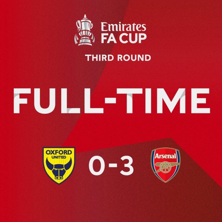 全场比赛结束,阿森纳3-0牛津联。