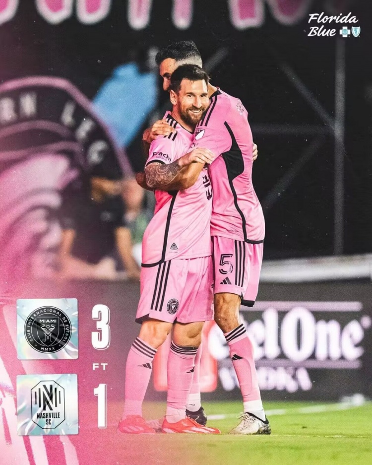 全场比赛结束,迈阿密国际3-1纳什维尔。