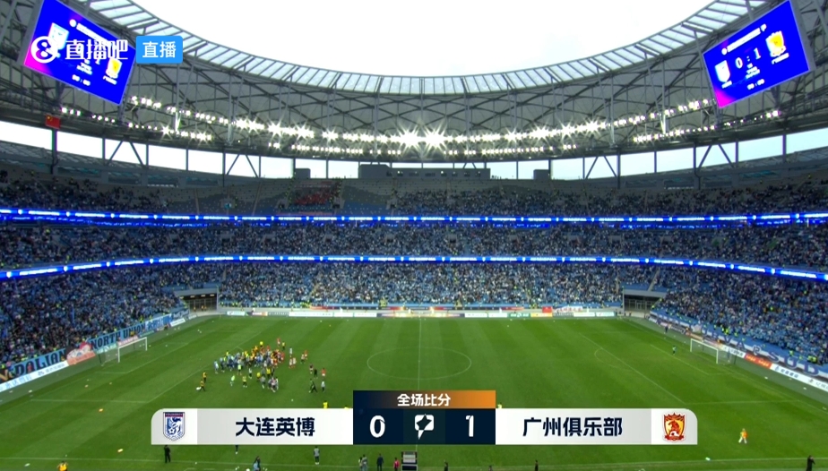 下半场补时8分钟。最终全场比赛结束,大连英博0-1广州队。