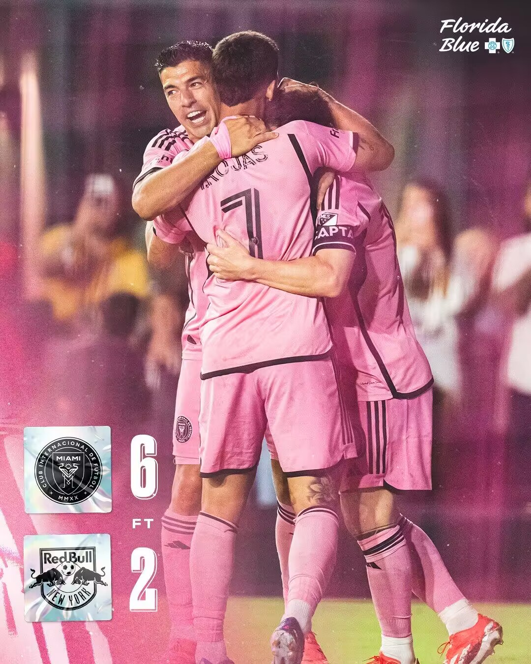 第80分钟,苏亚雷斯完成帽子戏法,迈阿密国际6-1纽约红牛。↓
