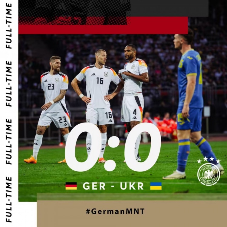 友谊赛-德国0-0乌克兰 德国27脚射门未果诺伊尔出击失误险送礼