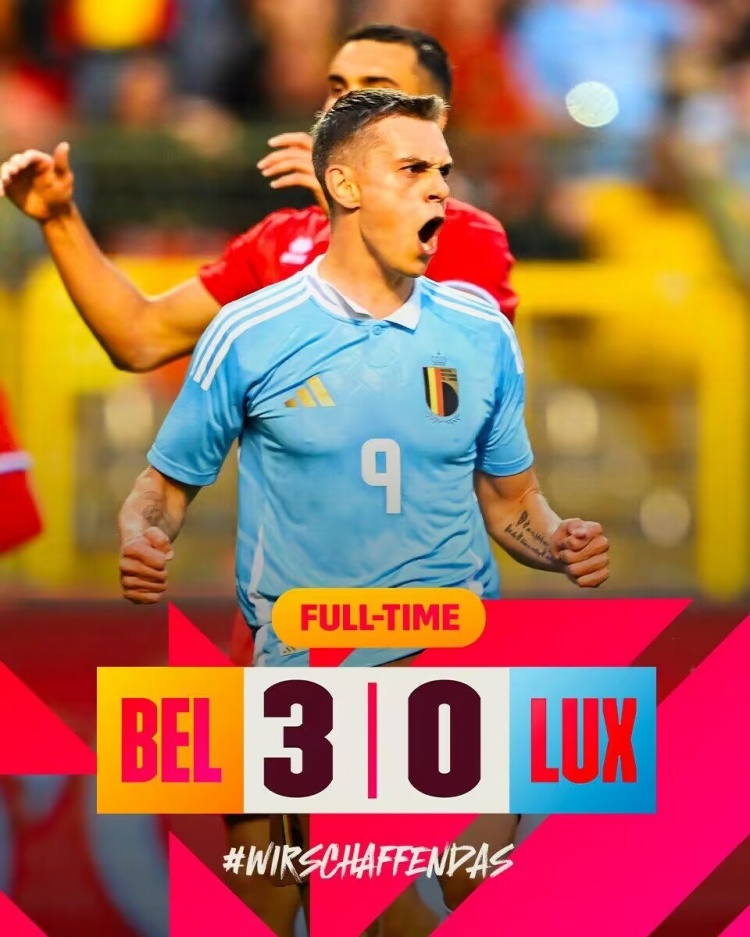 6月9日讯 北京时间6月9日凌晨2时,比利时与卢森堡进行一场热身赛。上半场,穆尼耶伤退,卢卡库点射首开纪录。比利时半场1-0领先卢森堡。下半场,卢卡库扩大领先优势,特罗萨德破门。最终比利时3-0击败卢森堡,最近两场热身赛取得两连胜。