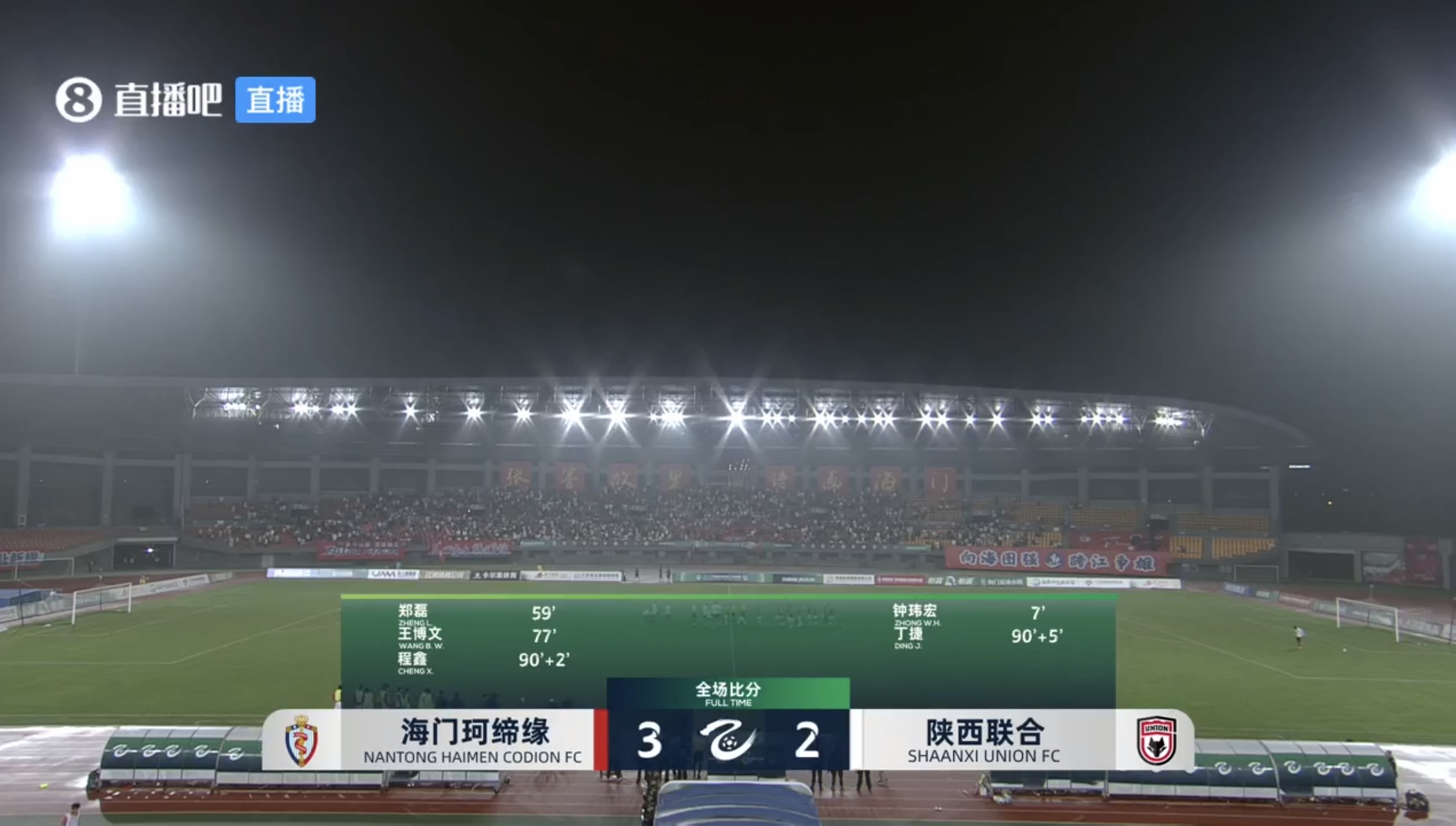 第90+5分钟,丁捷直接任意球破门,陕西联合扳回一球,2-3海门珂缔缘↓