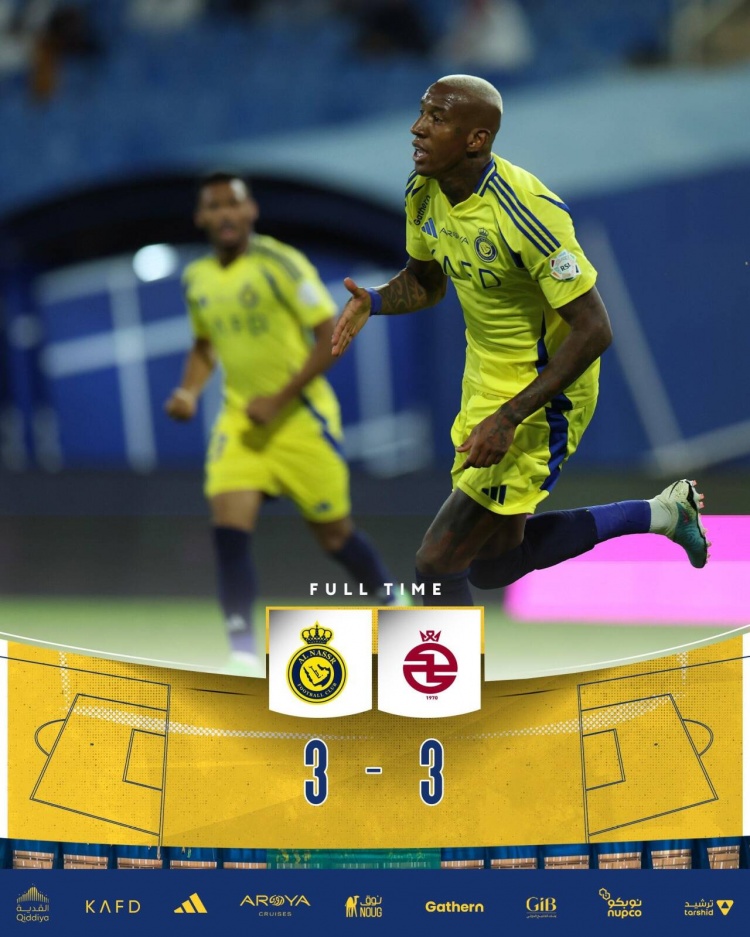 七连胜终结!利雅得胜利3-3卡赫胡德 C罗轮休塔利斯卡点射绝平