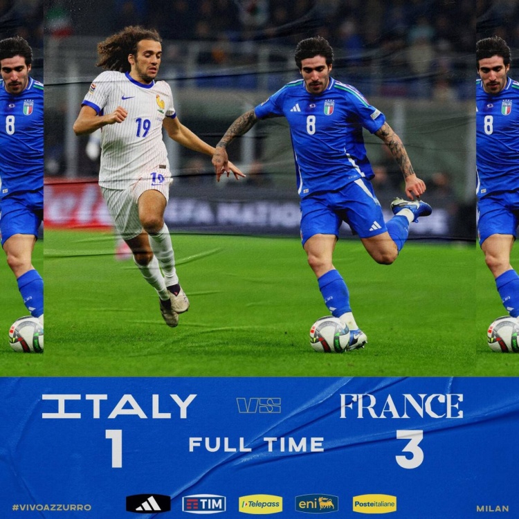11月18日讯 北京时间11月18日凌晨3时45分,欧国联A联赛第6轮,意大利主场迎战法国。上半场,拉比奥特首开纪录,随后迪涅制造了维卡里奥的乌龙球,坎比亚索扳回一城。法国半场2-1领先意大利。下半场,拉比奥特再下一城。最终法国3-1击败意大利。小组赛战罢,法国反超意大利获小组头名,意大利第二晋级淘汰赛。