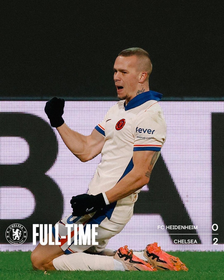 全场比赛结束,最终切尔西2-0海登海姆。