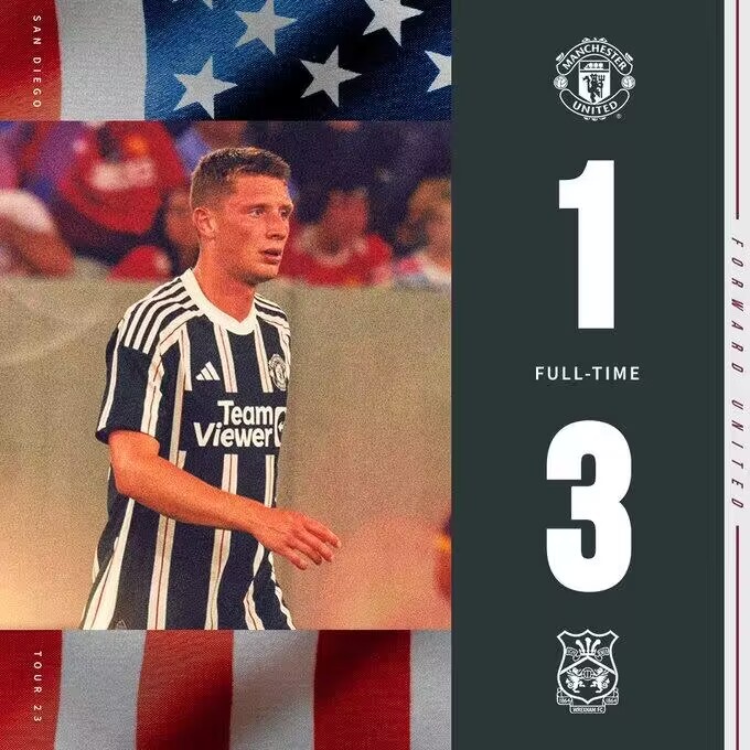 全场比赛结束,曼联1-3雷克瑟姆。