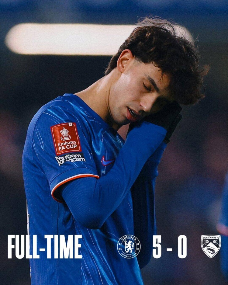 全场比赛结束,切尔西5-0莫克姆。