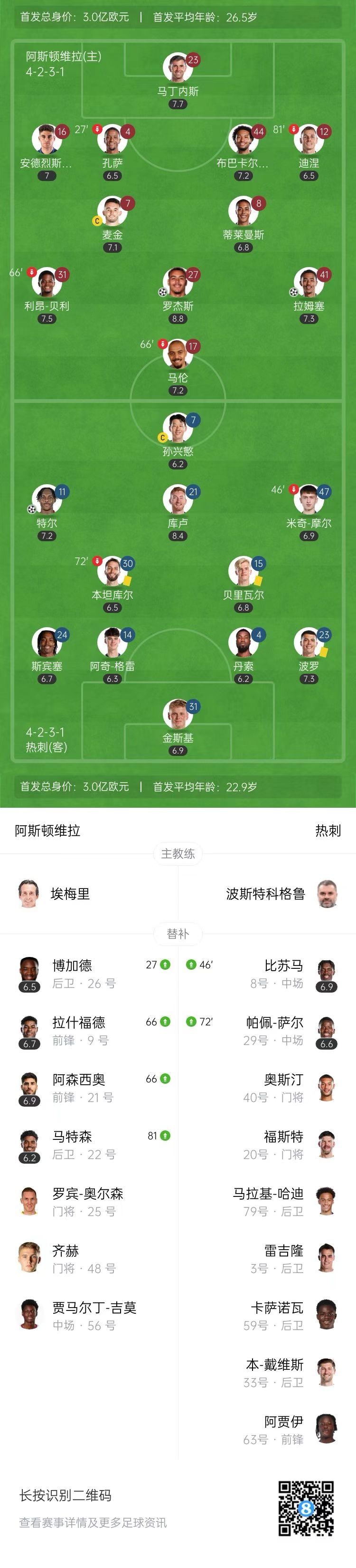 【双方比赛阵容】